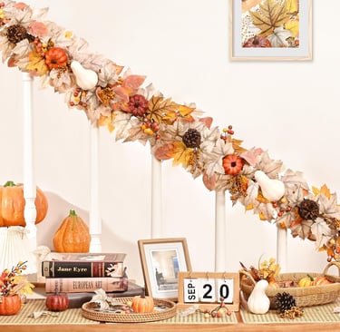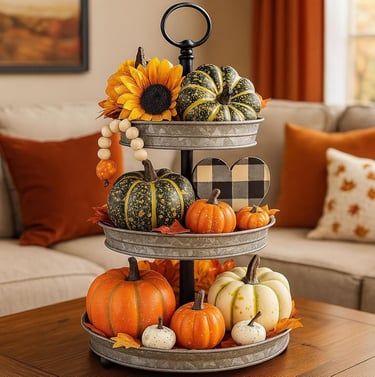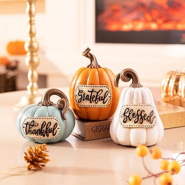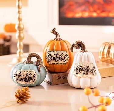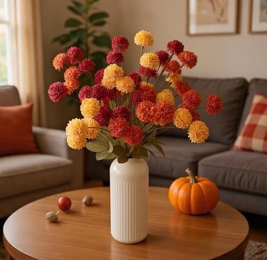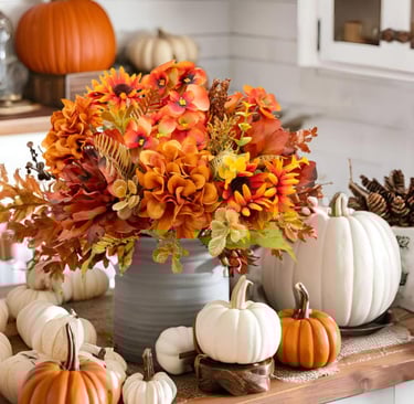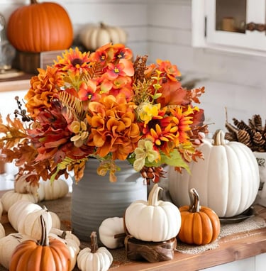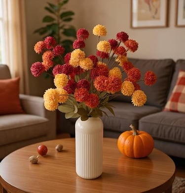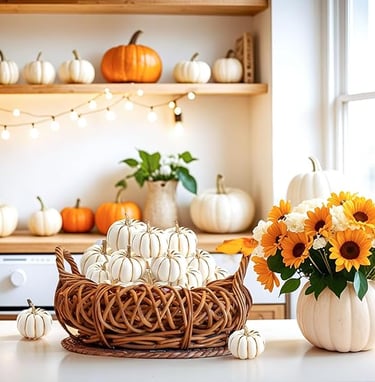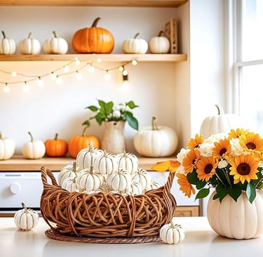 Pumpkins are the ultimate fall symbol. Mini pumpkins, whether real or faux, are versatile and can be used on dining tables, consoles, shelves, or even kitchen nooks. Faux pumpkins come in ceramic, fabric, and wood — perfect for long-lasting décor you can reuse year after year. A simple arrangement of different shapes and sizes instantly adds seasonal charm.