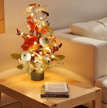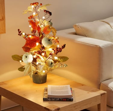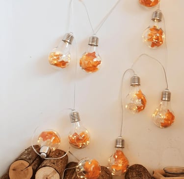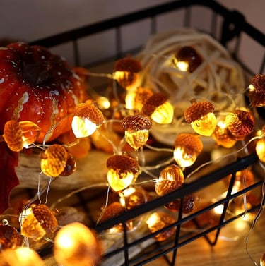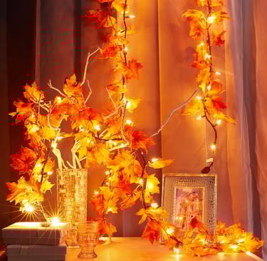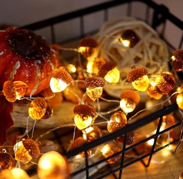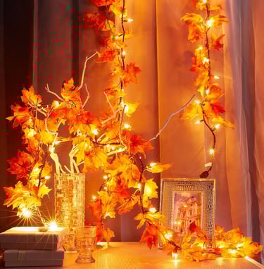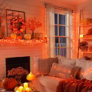 Lighting can completely change the atmosphere of a room, and fairy lights are perfect for adding that magical fall glow. Drape them over shelves, mirrors, or tuck them inside glass jars for a whimsical effect. The soft, twinkling light creates instant coziness — like stepping into a warm, autumn evening.