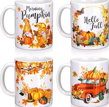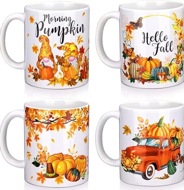 Nothing says fall like sipping hot drinks — coffee, tea, or hot chocolate — from a cozy seasonal mug. Choose mugs and tableware in earthy tones, with delicate prints, or even fun fall sayings. They’re practical, decorative, and turn everyday moments into little rituals of comfort. Plus, they add a festive touch to your kitchen or dining space.