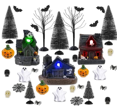 Create small Halloween scenes with tiny skeletons having tea, dancing pumpkins, or little mice in costumes. I love setting these up on console tables or shelves — they always draw attention. Use simple materials like paper, paint, and small toys. Each mini scene tells a fun story and makes your décor unique. Discover creative mini scene kits.