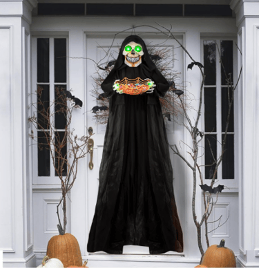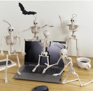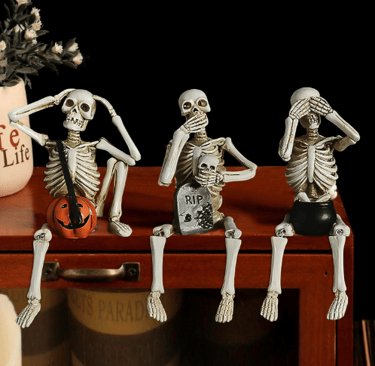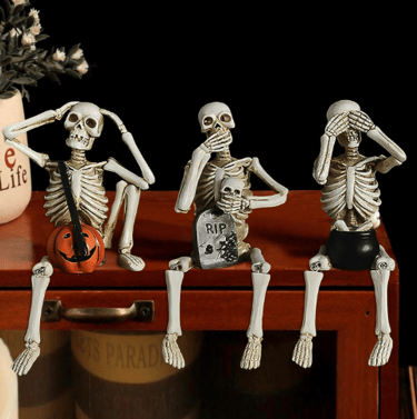 Imagine skeletons reading, sipping coffee, or even gaming — they bring life to your décor in unexpected ways! I love placing these scenes in quirky corners or even outdoors with life-sized skeletons. You can use your lifestyle, favorite shows, or hobbies for inspiration. It adds a fun personal touch, and guests always stop to look and laugh. You can also swap props (like glasses, books, or mugs) to change things up. Check out these skeletons ready to bring your idea to life.
