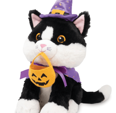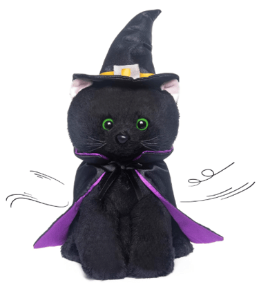 Transform your favorite plush toys into Halloween characters — cats, owls, or bats wearing mini hats or capes. I place them on shelves or tables as part of the setup. To make it even more fun, add candy or small props around them. It’s a charming way to involve kids and bring softness to your décor. Explore cute themed plush toys .