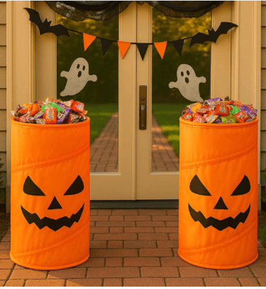 Turn your candy bowl into a character — it could be a smiling pumpkin, a monster mouth, or even a ghostly box! I love placing it by the door or on the coffee table for trick-or-treaters — it becomes part of the experience. Paint it, add googly eyes, or decorate the edges with colorful ribbons. Check out these creative candy bowl ideas.