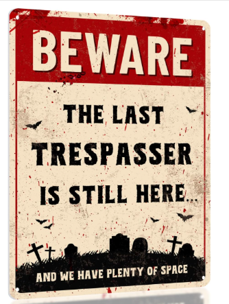 Signs with clever puns like “Enter if you dare… or bring chocolate” or “Warning: Mess Monster Lives Here” add humor and charm at once. Spread them across your yard, entryway, or side tables. I love creating my own sayings to surprise guests — they always spark laughter. Neon or reflective paint makes them stand out at night. Check out these funny Halloween sign designs.